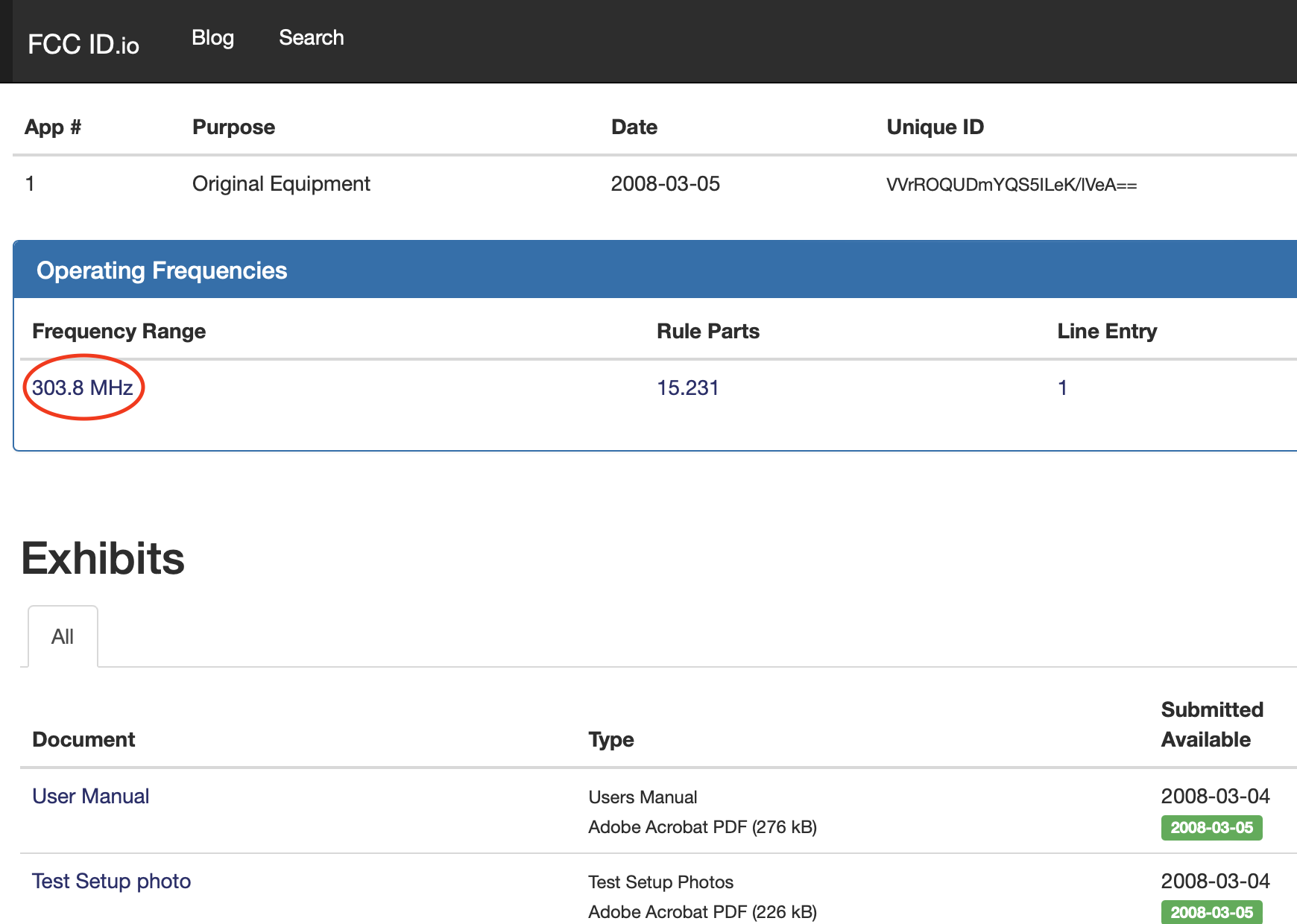 How to use the FCC DB to be able to obtain all kind of information on a specific Sub-1 Ghz wireless device/remote.
