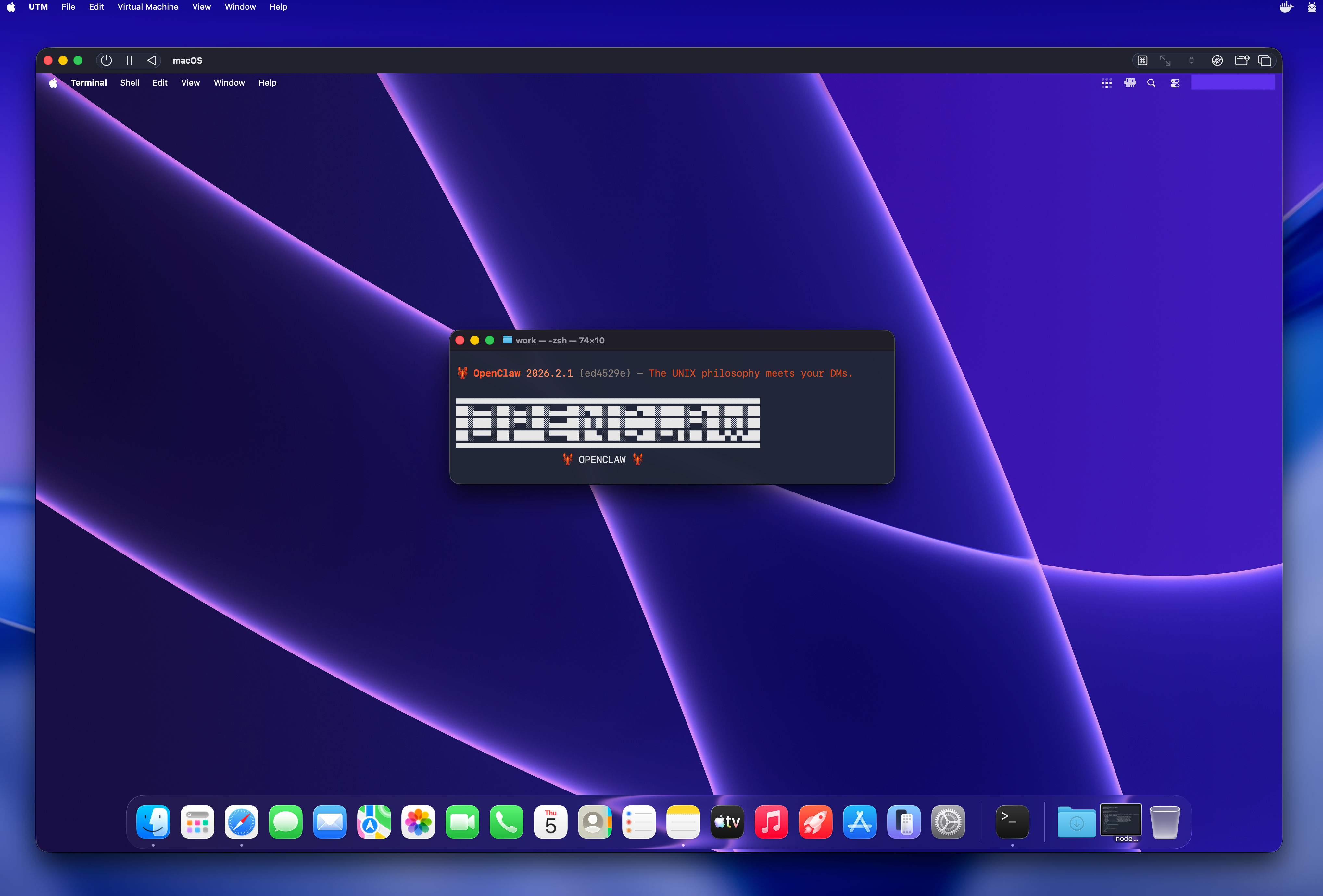 For OpenClaw, I chose to run a macOS VM since UTM’s virtualization on Apple Silicon provides excellent performance for macOS guests, and OpenClaw has native Mac support with simplified installation.